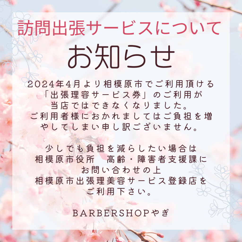 お電話・LINEなどでお問い合わせください(訪問カット担当:金子祐子)